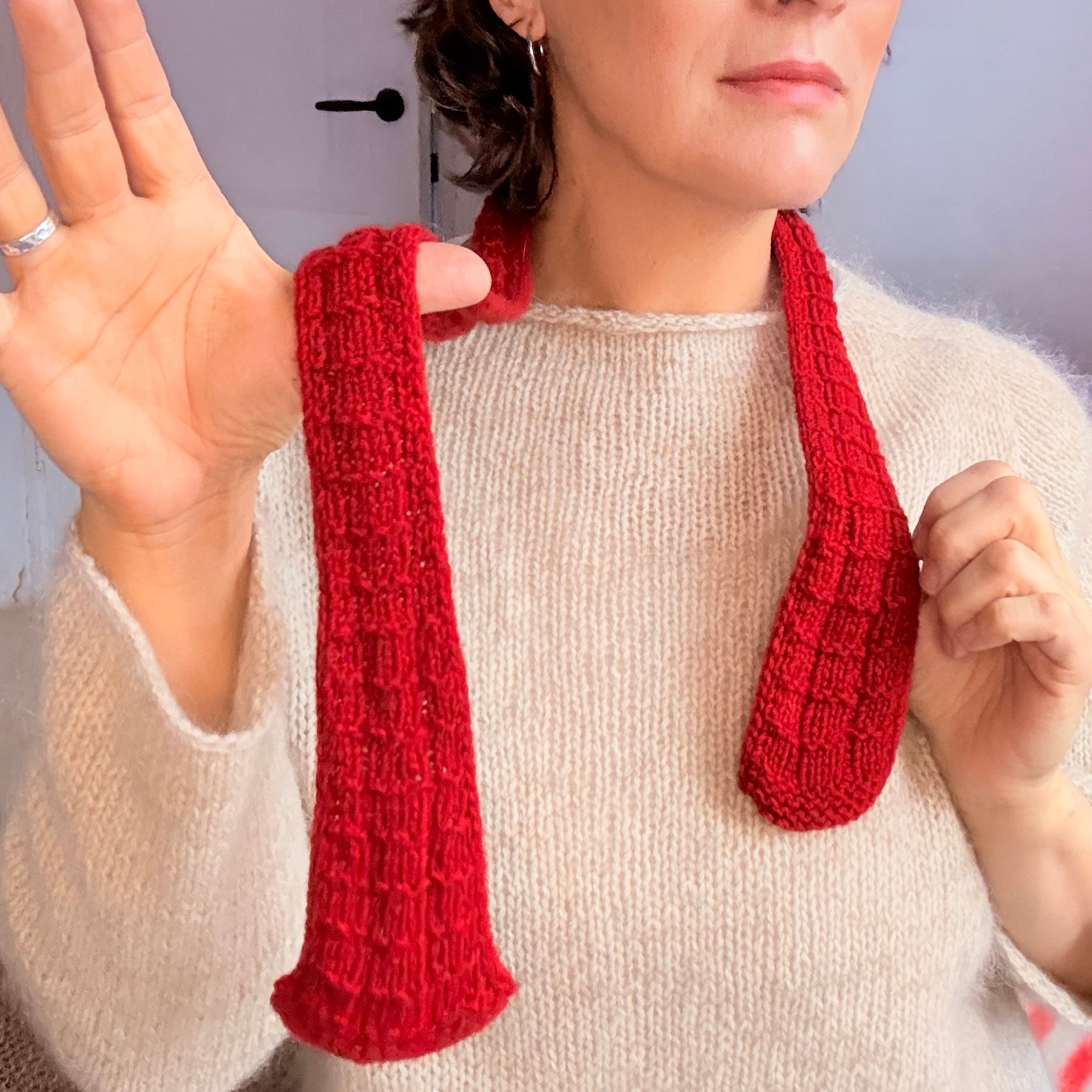 De Studio Scarf wordt plat gebreid aan de hand van een duidelijk uitgeschreven patroon.